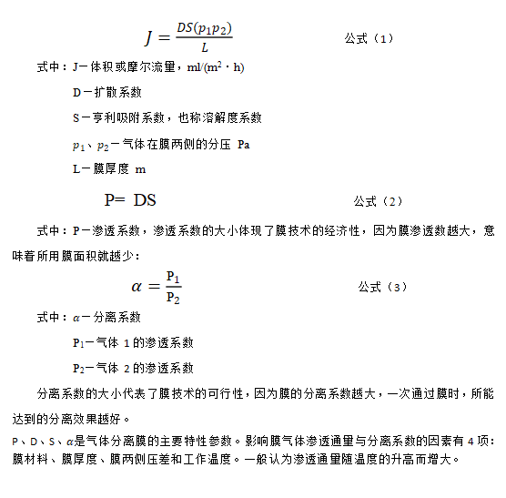 氣體透過膜的流量計算公式如下: