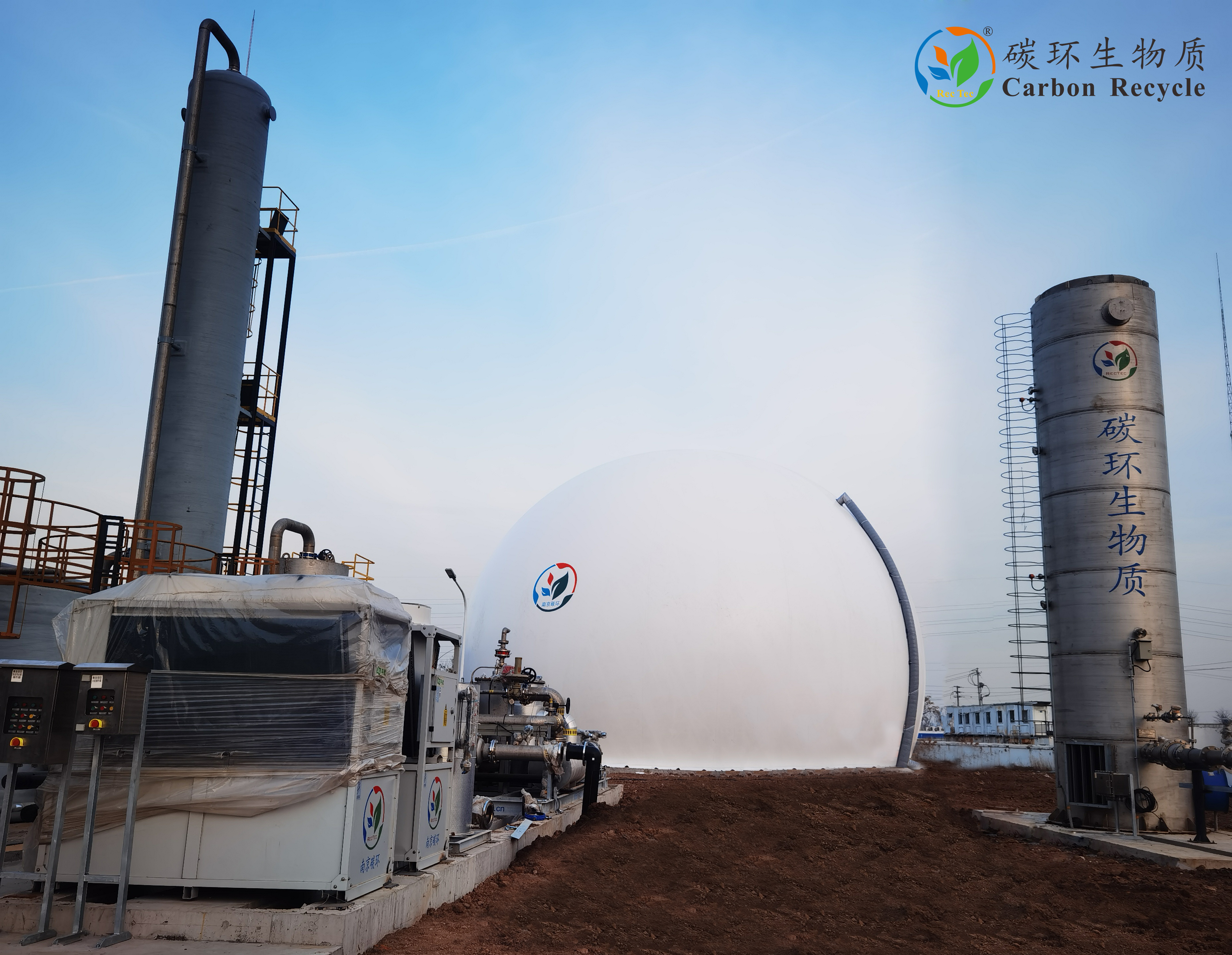 南京碳環(huán)為客戶提供的沼氣凈化脫硫、火炬及存儲(chǔ)系統(tǒng)由"沼氣儲(chǔ)存系統(tǒng)(雙膜氣柜)、沼氣脫硫系統(tǒng)(濕法脫硫、干法脫硫)、沼氣預(yù)處理系統(tǒng)(增壓、過濾、除濕)和沼氣火炬等工藝設(shè)備"組成成套設(shè)備供貨。